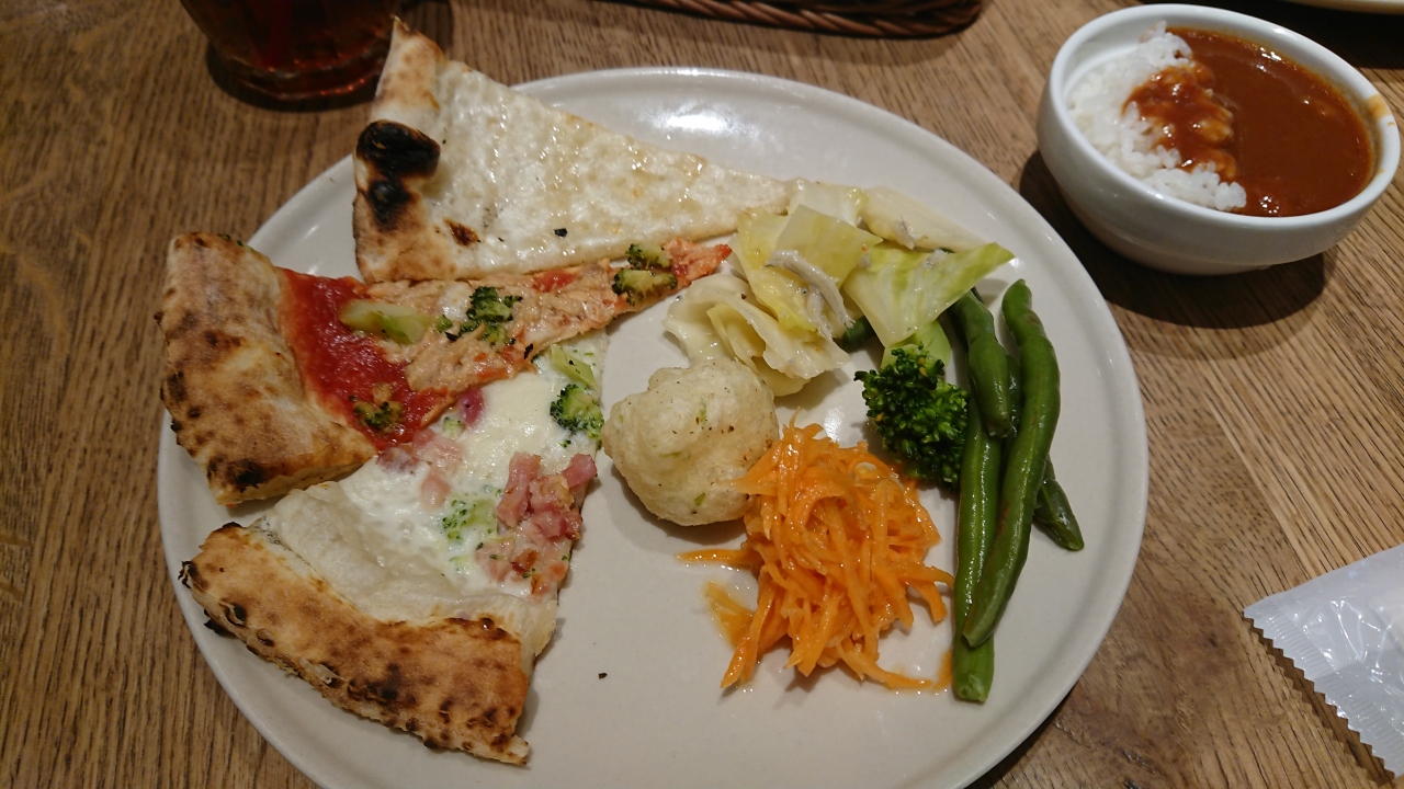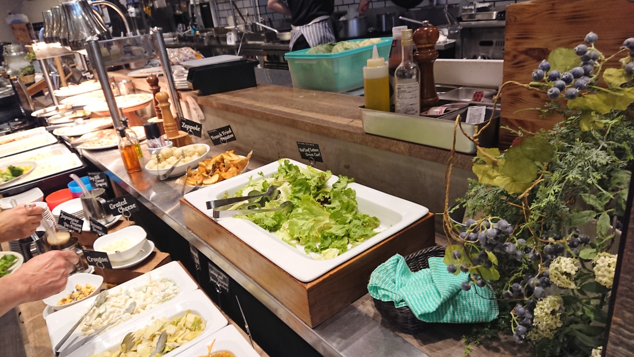 出来立てのピザ、パスタ、サラダ、前菜、デザートなどが食べ放題でした。