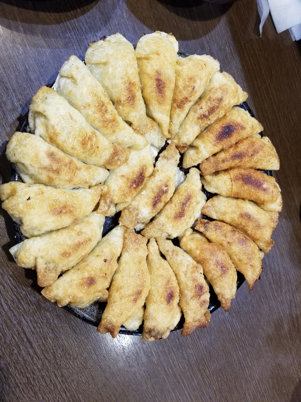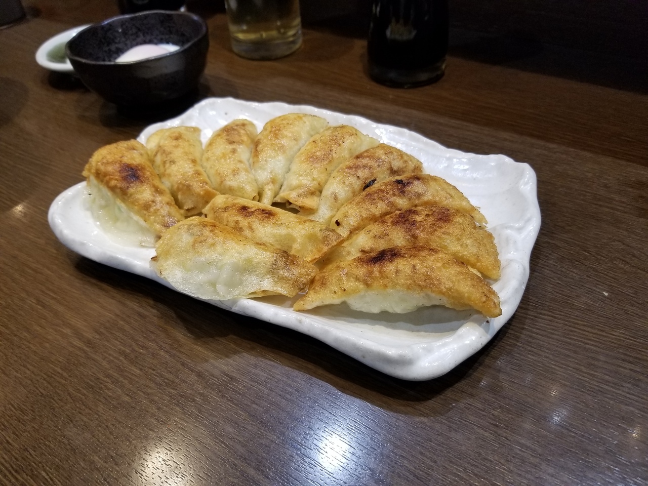 ゴールデンウィーク中に行きました。11時オープンですが、10時40分にはウェイティングシートに5組記載されてました。お店の前で待ってる人はいなかったので、名前を書いたら11時までに戻れば大丈夫だと思います。その後も次々とお客さんがきてました。私たちはオープンと同時に店内に入れたのですが、私たちの次の方からはオープンと同時には入れませんでした。店内も広くなかったです。だいたい円盤餃子1皿で2人分くらいとのこと。円盤餃子1皿と円盤餃子の半皿を1つ、そしてライスセットを注文。ライスセットにはライス、お味噌汁、漬物そして、温泉卵か杏仁豆腐、サラダのどれか1つが選べます。餃子は小ぶりであげ焼きにされているような感じでした。お味噌汁が具だくさんでおいしかったです。私たちが食べ終わる頃には待ってる方のが増えてました。お店には駐車場はなく、提携している駐車場もないそうです。