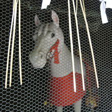 楼門をくぐって左側にあります。小さな建物で中も暗いのでちょっと見逃しがちですが、中にある白い神馬の彫刻は左甚五郎の作だそうで、目にはギヤマンがはめられています。