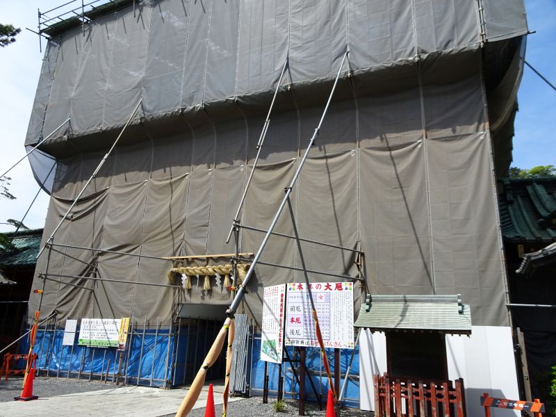 総門から入って目の前、楼門がありますが、、、何とメンテナンス中でシートで覆われていました。メンテナンスは2020年まで続くとのこと。総漆塗りで立派な彫り物もあるという楼門を見てみたかったのですが残念でした。次のお披露目が楽しみです。