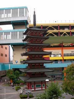 小田急線の海老名駅の東口のショッピングモールの中に海老名中央公園があり、公園の一角に七重の搭があり、近くの相模国分寺にあった七重塔を三分の一に縮小して市制20周年を記念して復元した搭で、海老名市のシンボルになっています。