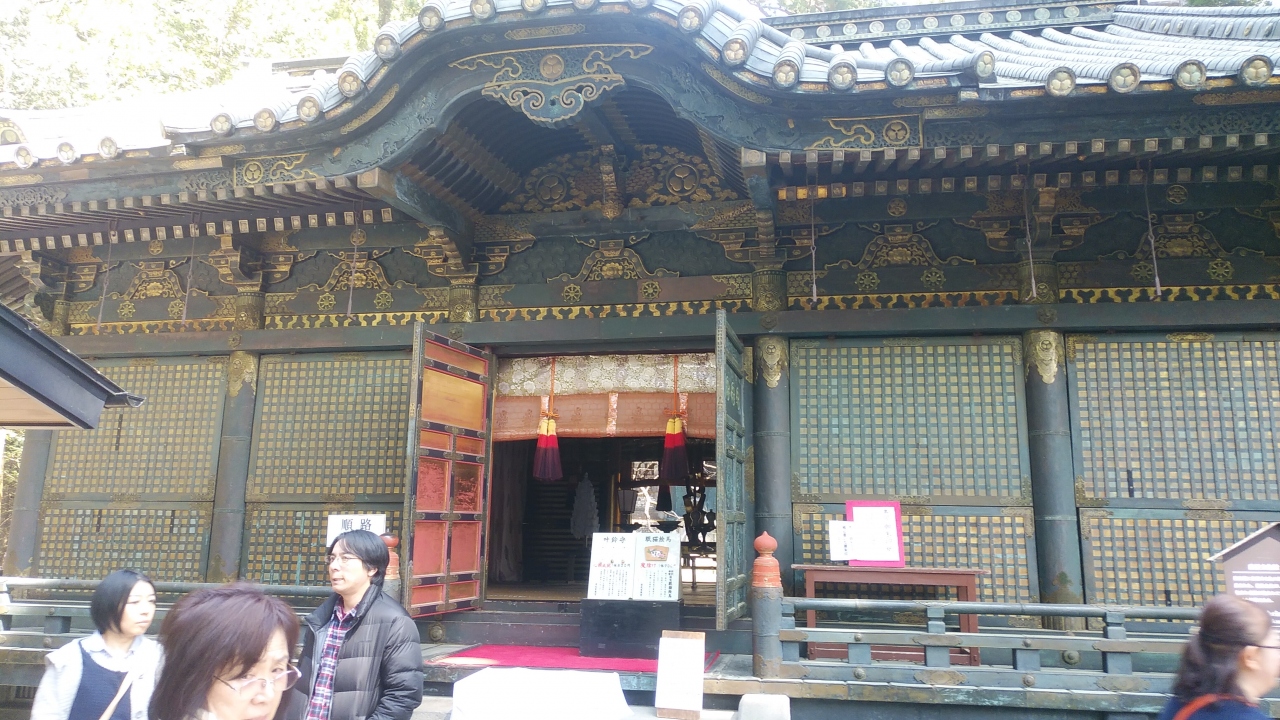 銅鳥居を潜ると拝殿があり、拝殿は歴代将軍しか昇る事が叶わなかった場所で、奥にある宝塔に眠っている「神となった家康公」に祈りを捧げる処で入母屋造銅瓦葺平側前後破風付で総黒漆塗となっています。一見するとあまり大したことはないと思いましたが、よく見ると細かい処には金の装飾などがあり流石家康に祈りを捧げる場所だと思いました。