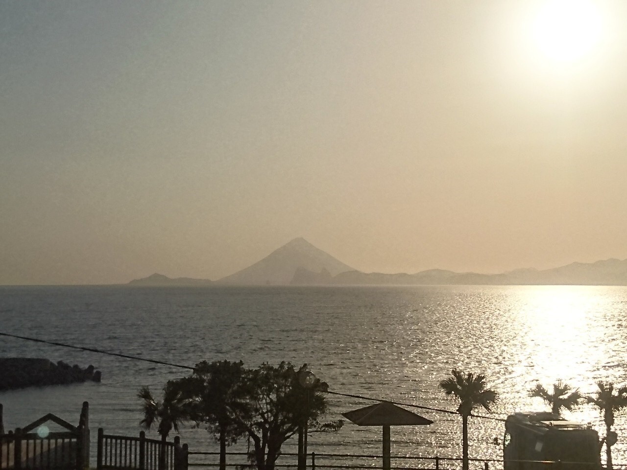 逆に、もう少し遅い時刻だと、夕焼けに染まる開聞岳が見れたんでしょうね。