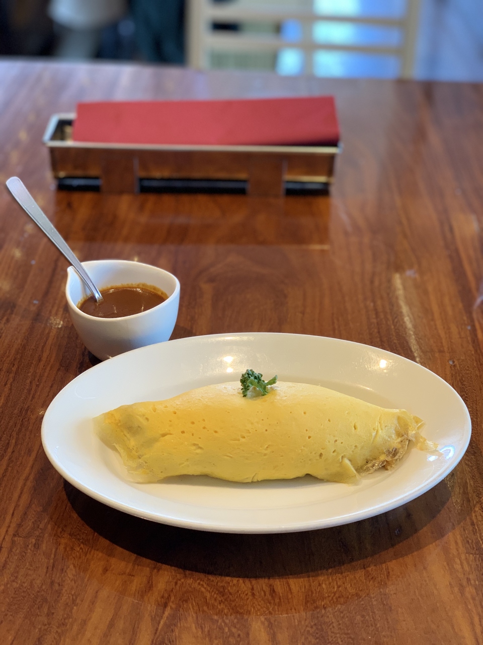 オムライスはケチャップかデミグラスソースが選べるしハーフサイズもあるのでお腹の具合に合わせられて良い。