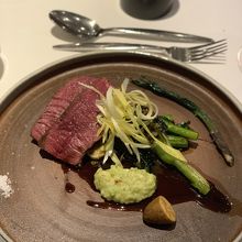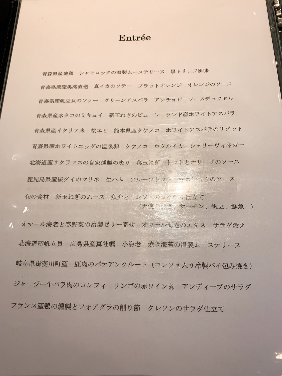 夜のプリフィクスコースは5千円と6千円とありメイン料理が肉と魚両方の6千円にした。野菜多めであっさりしている。