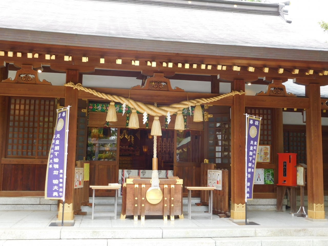 東急多摩川線「武蔵新田」駅から、商店街の中を歩いて数分の場所にある神社です。緑が多く、とても落ち着いた雰囲気で、境内には樹齢700年の大ケヤキ(御神木)や、多摩川七福神の恵比寿様、石の卓球台、などがありました。御朱印帳に書いて頂く御朱印はかなり待ち時間がかかるようなので、書置きの御朱印を頂きました。とても神聖な気持ちになれる場所でした。