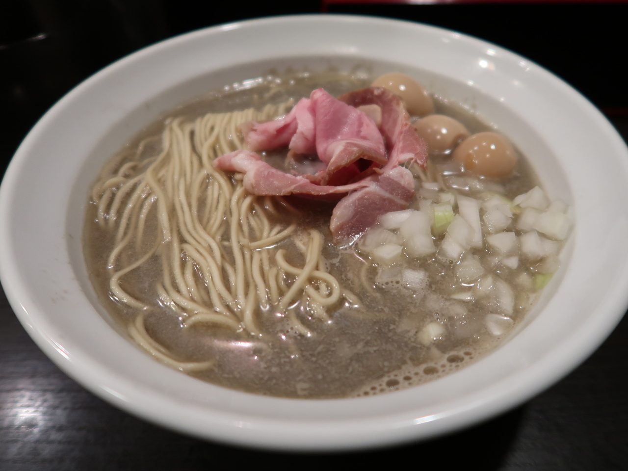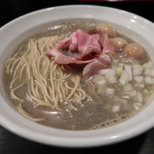 こちら、日替わりであれこれ限定麺が登場するのも人気の訳らしいですが、初めてなのでお店の代表的なメニューの煮干しそばをいただきました。