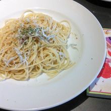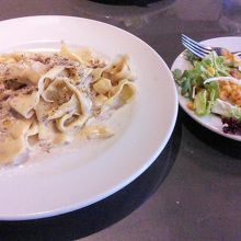 三浦半島の契約農家から届くオーガニック野菜など、素材にこだわりのあるイタリア料理店です。ランチはパスタやリゾットは980円、豚のサルティンボッカ、鶏のコンフィなどの肉料理や魚料理のランチは1280円です。お料理ができるまで、自慢のサラダバーの新鮮な三浦野菜を食べながら待ちます。ポテトサラダが人気のようで、補給されたと思ったらあっという間にお皿が空っぽになっていました。シラスとカラスミのアーリオオーリオ、トリュフ風味のキノコのラグーをいただきました。気軽に本場の味が楽しめるお店です。