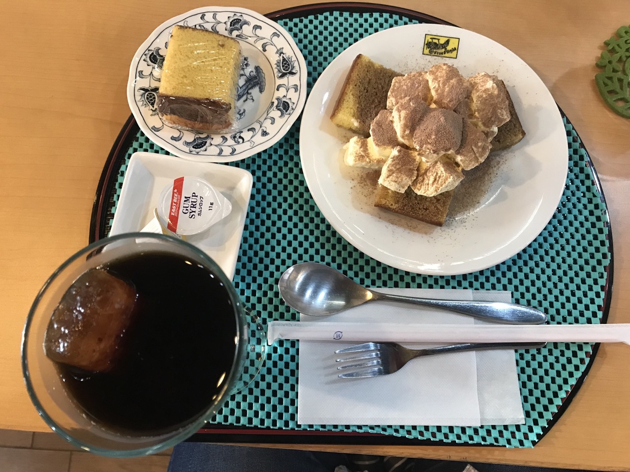 カスティラミスは、カステラにマスカルポーネチーズがたっっっぶりで美味でした!アイスコーヒーの氷がコーヒーでできてる気遣いもうれしい。