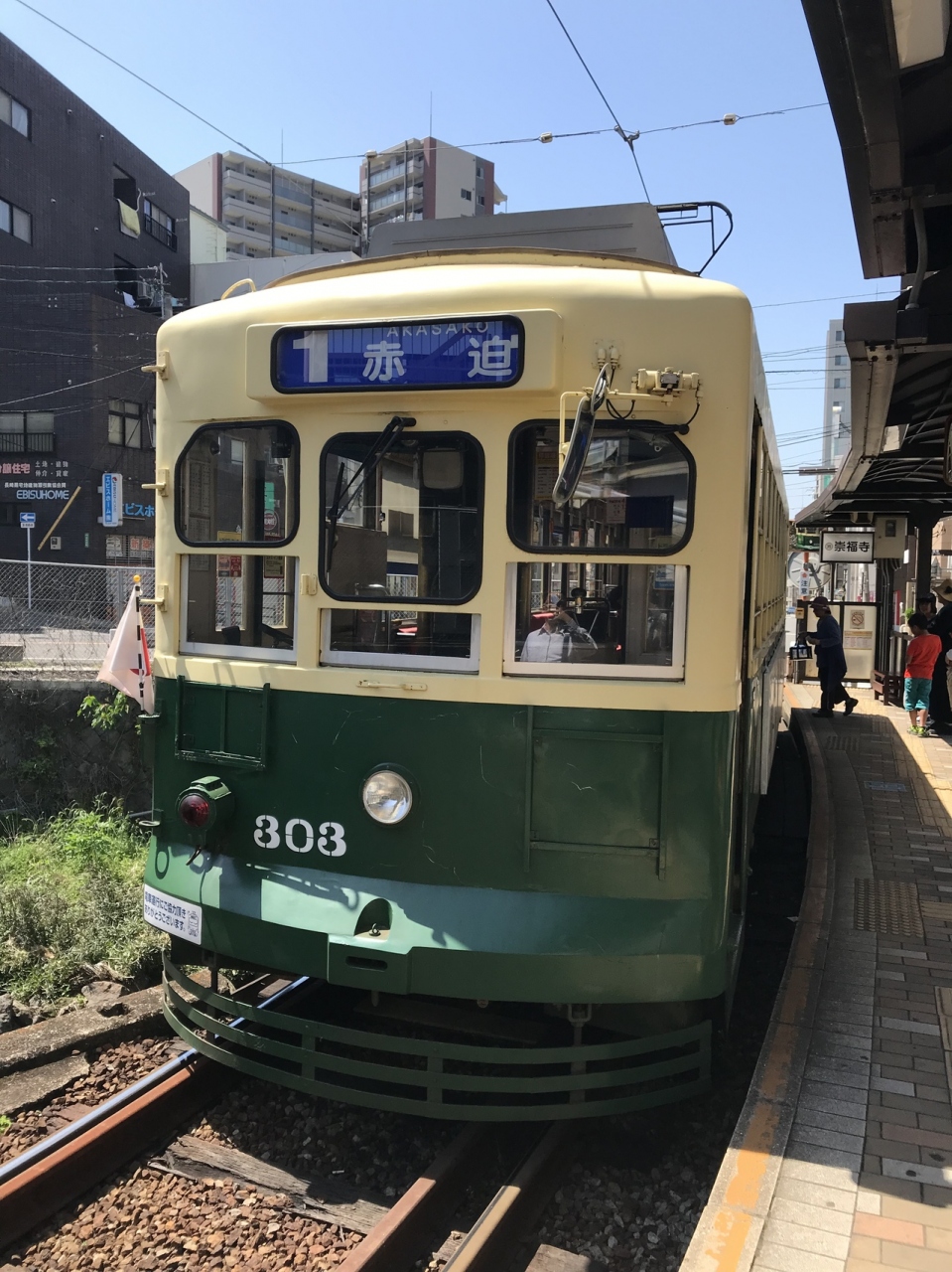 長崎電気軌道は、赤迫から崇福寺・蛍茶屋などを結ぶ路面電車です。130円。SuicaやICOCAは(2019年5月現在)使えません。