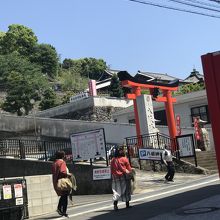 長崎電気軌道崇福寺電停徒歩すぐ、崇福寺のそばで、赤い鳥居が鮮やかです。