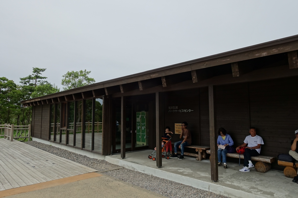 2つある茶色の建物のうち、駐車場から見て左側のほうが知床五湖パークサービスセンターの建物になります。名前だけ聞くと観光案内所のような施設をイメージしますが、中にあるのは軽食とお土産です。