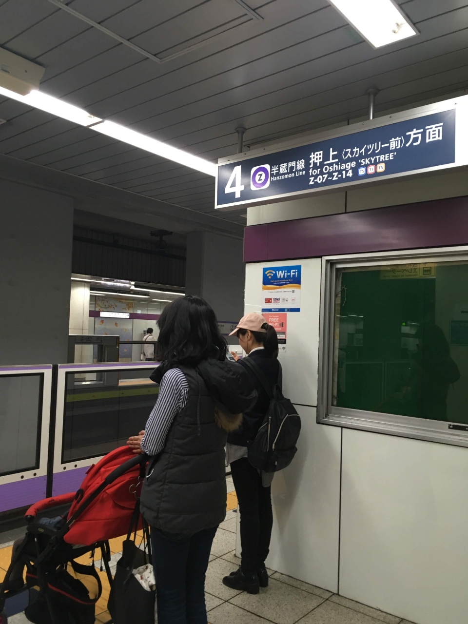 紫色がイメージカラーの東京メトロ半蔵門線。割合新しい路線だけあって、ほとんどの駅が地下深くにあります。乗り換えはかなり便宜が図られていて、表参道駅での乗り換えは対面式で非常に便利です。本数も多いのですが、ほとんどの電車が伊勢崎線と田園都市線に乗り入れているので、東京メトロの車両だけでなく、東急や東武の車両も多くあります。