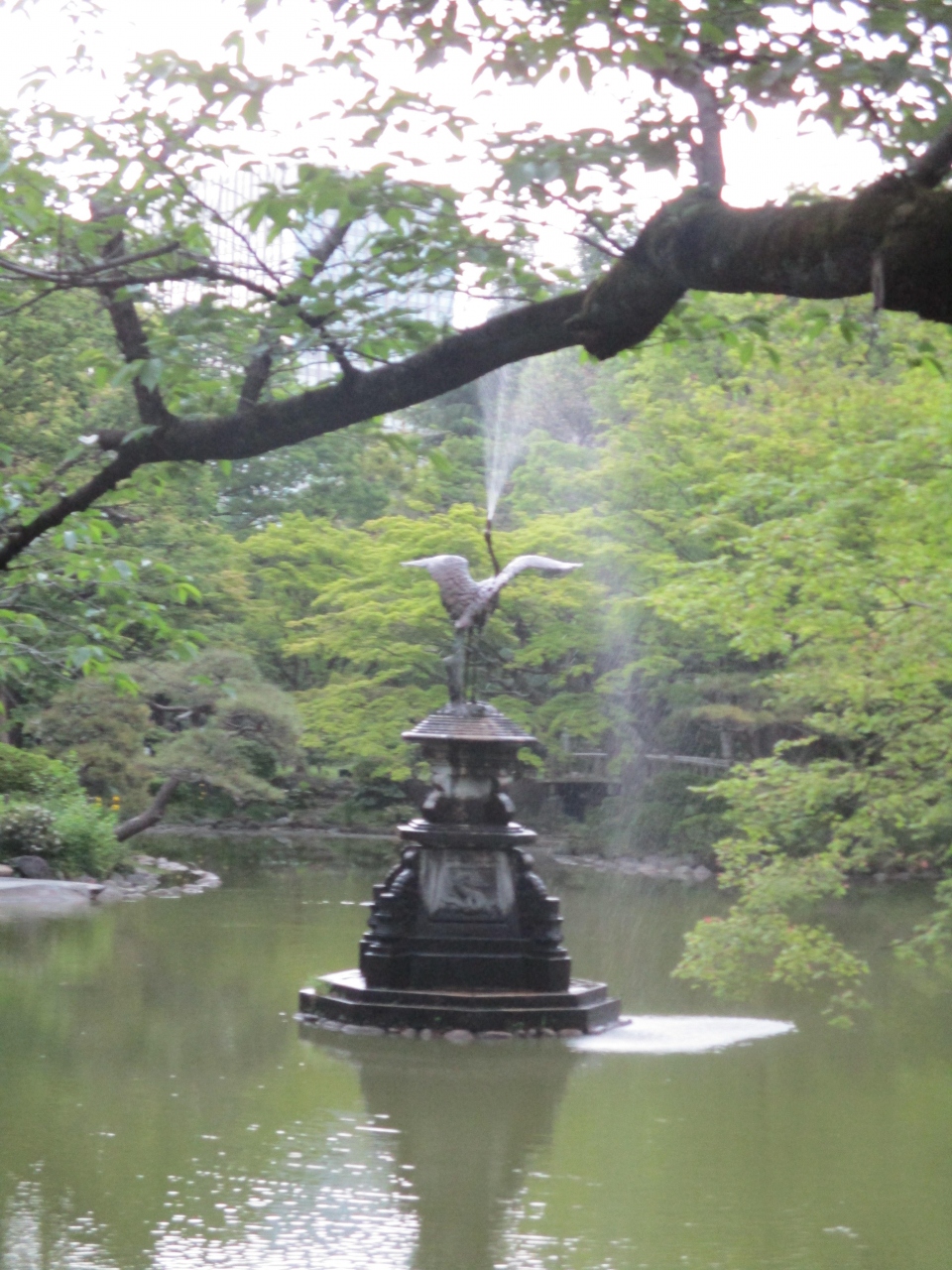 野外音楽堂の入口のすぐそばに鶴の噴水がありました