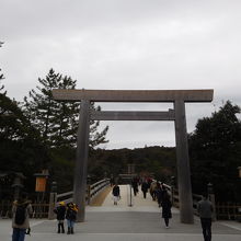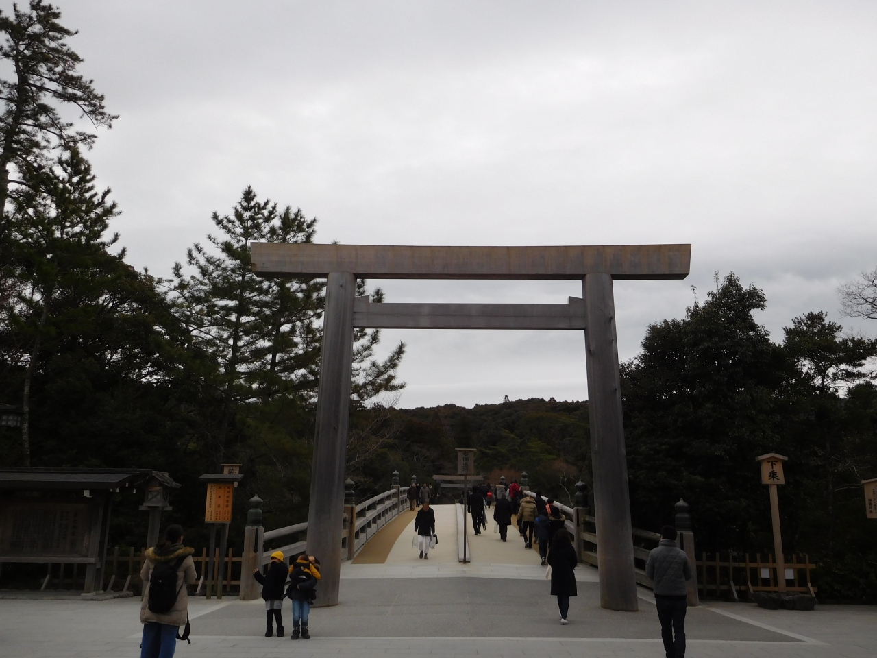 伊勢神宮 内宮へ向かう際、最初に通るのが、五十鈴川に架かる「宇治橋」となります。木造の大きな橋で、橋の両端には大きな鳥居がありました。この橋を渡ると、神域へと入る事になるので、きちんとお辞儀をしてから渡りました。初めての伊勢神宮(内宮)への参拝だったので、とても緊張感と期待感が高まって渡りました。