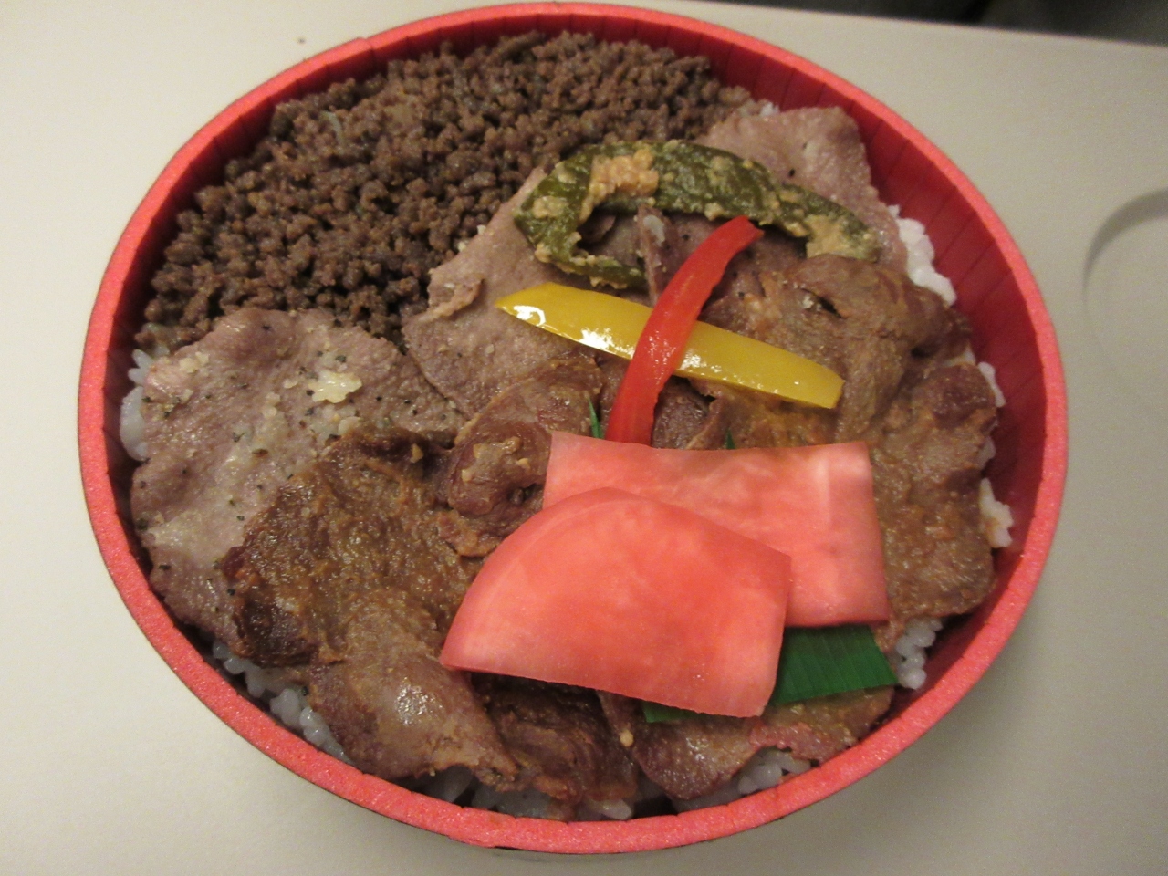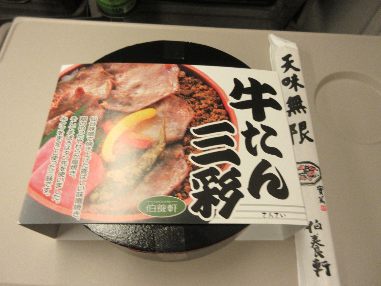 明治23年に仙台駅で弁当の立ち売りを始めた伯養軒の牛たん三彩を新幹線車内で夕食に食べました。味の濃い味噌焼き、さっぱりした塩焼き、甘口のそぼろの三種類の牛たんを味わいました。冷えている弁当なので牛たんは少し硬かったですが、噛んでいくうちに甘味が出てきて美味しかったです。ご飯の量は適量で、満足しました。青唐辛子がピリッと辛くアクセントになっていました。仙台駅で駅弁に迷っている方におすすめです。
