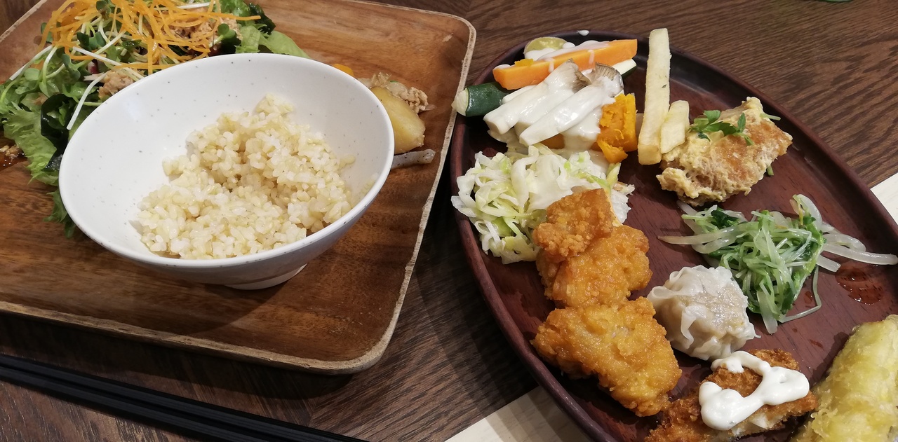 こちらはパークエントランスから最近でビュッフェ方式の食べ放題飲み放題。家庭的な野菜の多い料理が多くておすすめ!
