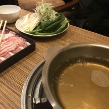 自由が丘駅のすぐ近くにあるしゃぶしゃぶ屋さんです。豚肉が専門のお店でした。こちらではポン酢やごまだれといったつけダレはなく、スープと一緒に楽しむスタイルでした。入口近くのソファー席を利用しましたが、少し食べにくかったです。