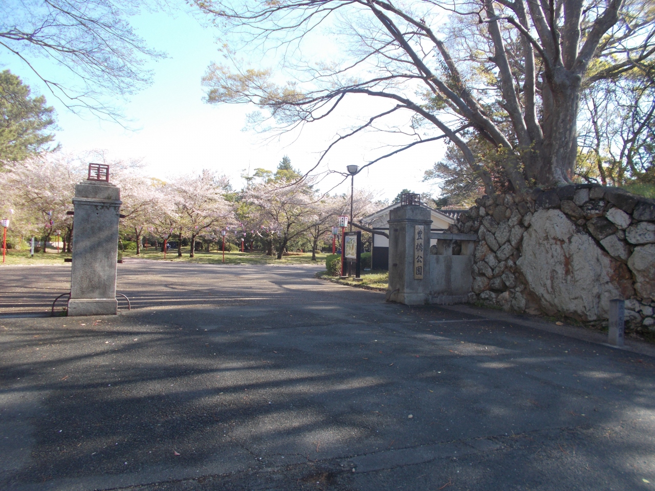 この豊橋公園は町の北東のエリアにあります。豊川が蛇行する場所に吉田城があったのです。その場所が今は公園になっています。公園は吉田城の本丸、二の丸、三の丸跡地です。公園内には本丸跡地に復元の櫓がたてられています。