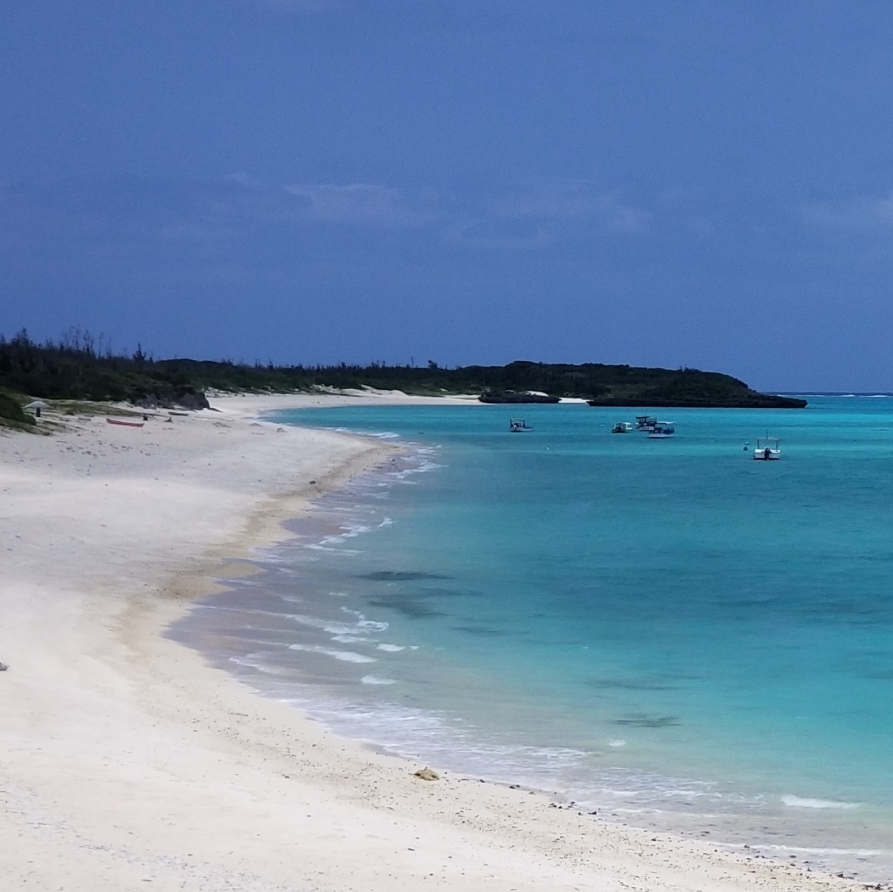 島一番の名所百合ヶ浜のある大金久海岸の向こう側の奥(写真)にあるビーチです。