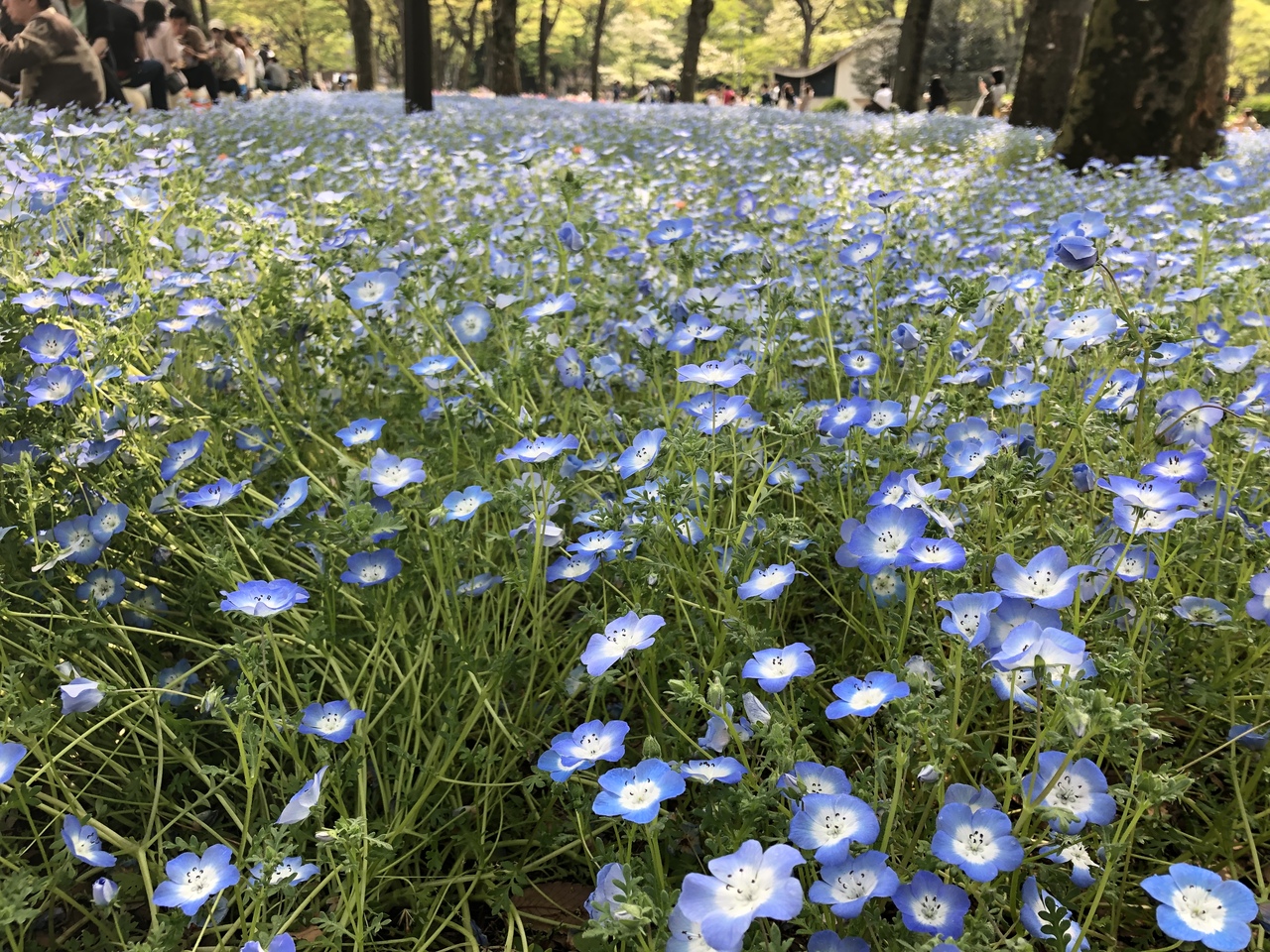 東京の歴史ある都市公園、日比谷公園。誰もが知っている名公園ですが、最近知られざる名所が。そう、あのネモフィラの栽培を始めたのです。松本楼と噴水広場の間に無数に咲き誇る水色。なかなかの迫力です!茨城県まで行く必要がないかも…と思わせる都市の絶景です。
