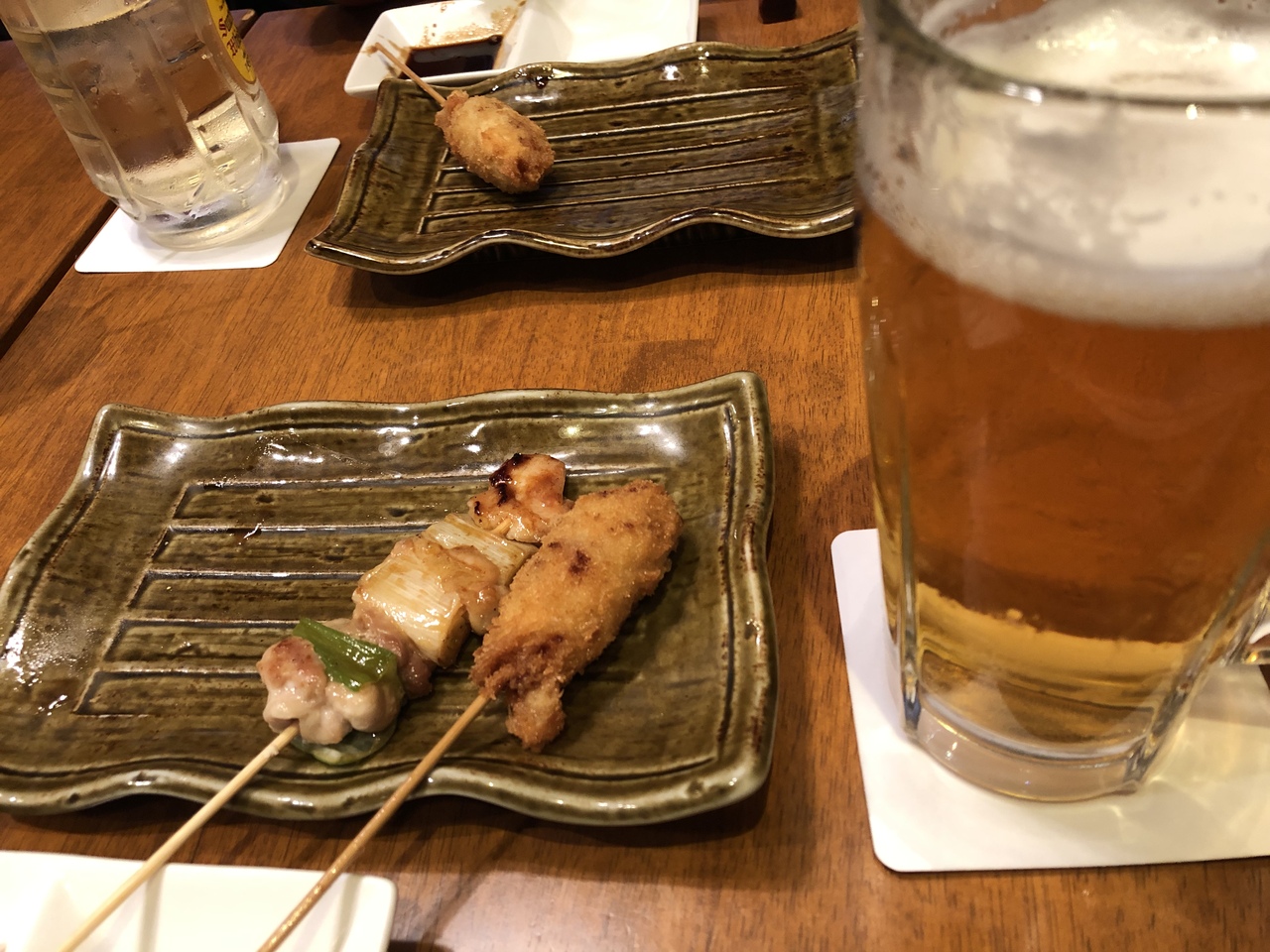 淀屋橋での打ち合わせ後に利用しました。同僚3人で訪れ、晩酌セットで1時間ほど串カツを楽しみました。2度漬け禁止、が多い中で上品な子のお店は1人ずつにソースと塩の取り皿。10種類の串をネタに応じて、ソースと塩で食べ分けて楽しみました。ビールもよく冷えていて美味でした。