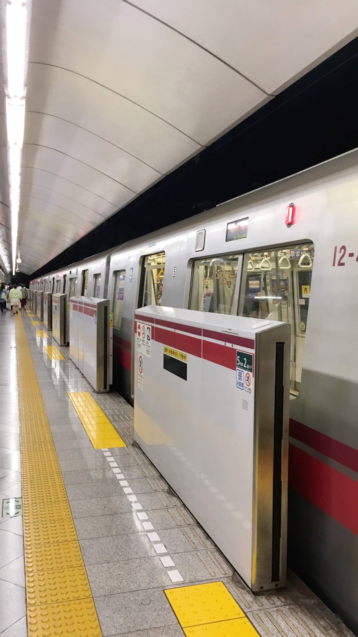 地下鉄の山手線のような存在ですが、都営線だけあって東京メトロとの乗り換えのときの便宜があまりはかられていない都営地下鉄大江戸線。新宿駅付近に複数の駅があるのもちょっと変わっています。割と新しい電車ですが、通路も狭いですし、いまひとつ開放感はありません。