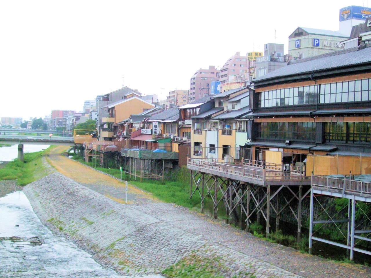 京都市内を南北に貫く川で、ー普段は穏やかに流れる。穏やかに流れているときには川べりを散策することもでき、気候もよければとても気持ちがよい。河原町近辺の鴨川に面した飲食店は鴨川の河川敷にせり出すようにバルコニーが作られ、川を楽しみながら食事を楽しめる。