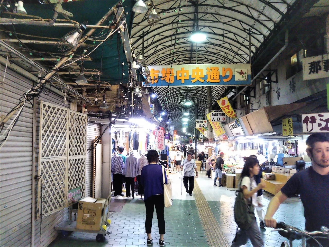 むつみ橋から市場本通りに入った先、牧志第一公設市場から浮島通りに係る辺りまで続く150mほどのアーケードの商店街です。公設市場以外でも通りの両脇には土産物・衣料・飲食・居酒屋さんなど色々な商店が犇めき、かなりの賑わいを見せています。