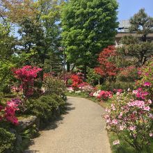 主計町の茶屋街をあてもなくぶらぶらしているとツツジが鮮やかに咲いている庭のようなエリアを見つけました。彦三緑地というようですが、加賀藩士屋敷跡地とのこと。道も綺麗に保たれており、人も少なかったのでよいスポットだと思います。