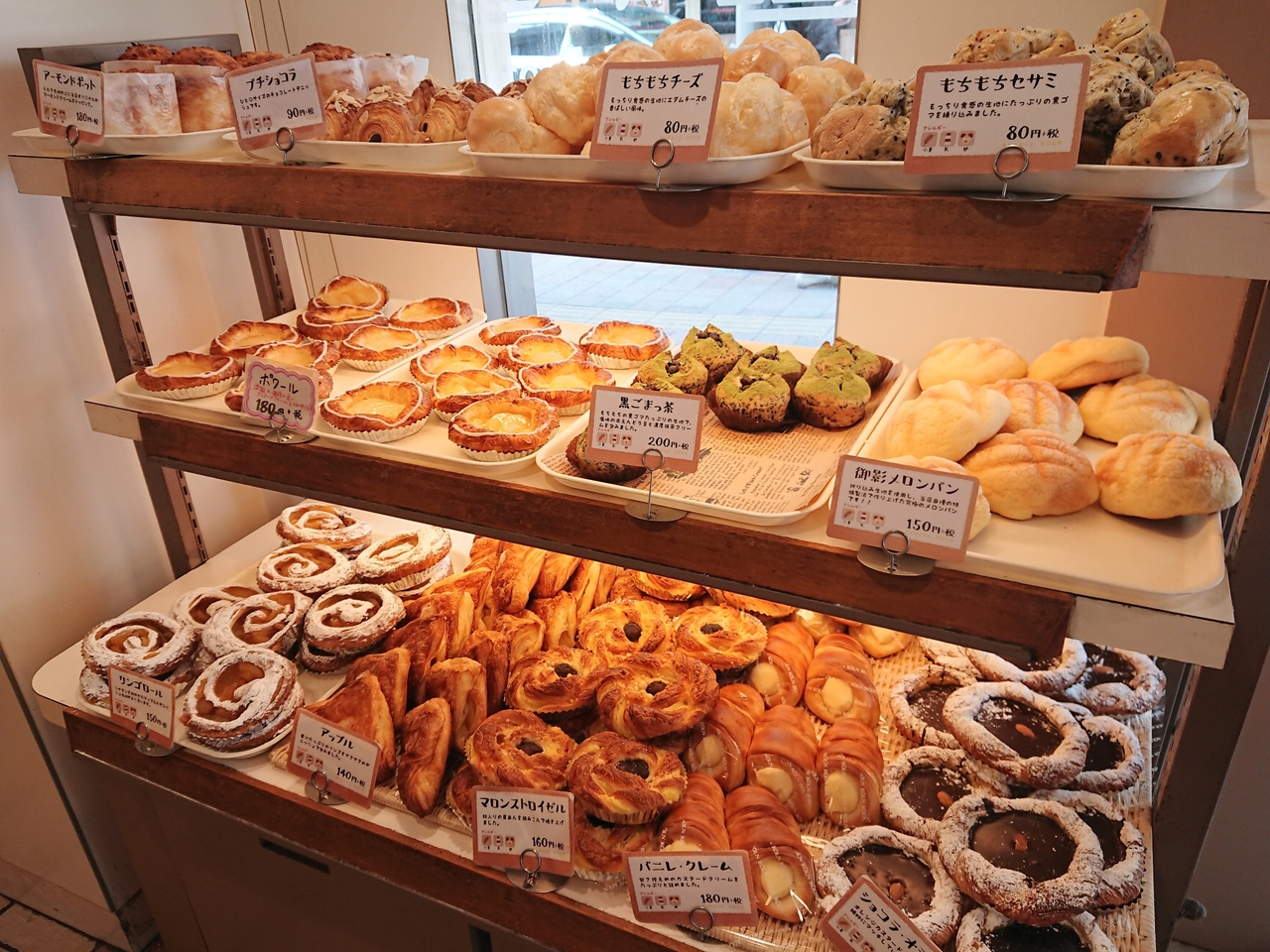 こちらは水を一切使わず、全て牛乳を使って焼いているこだわりのお店だそうです。その分、値段が高そうな感じがしますが、そんなことはなく、平均的なパン屋の価格で、塩パンは100円など、パンによっては安いくらいでした。