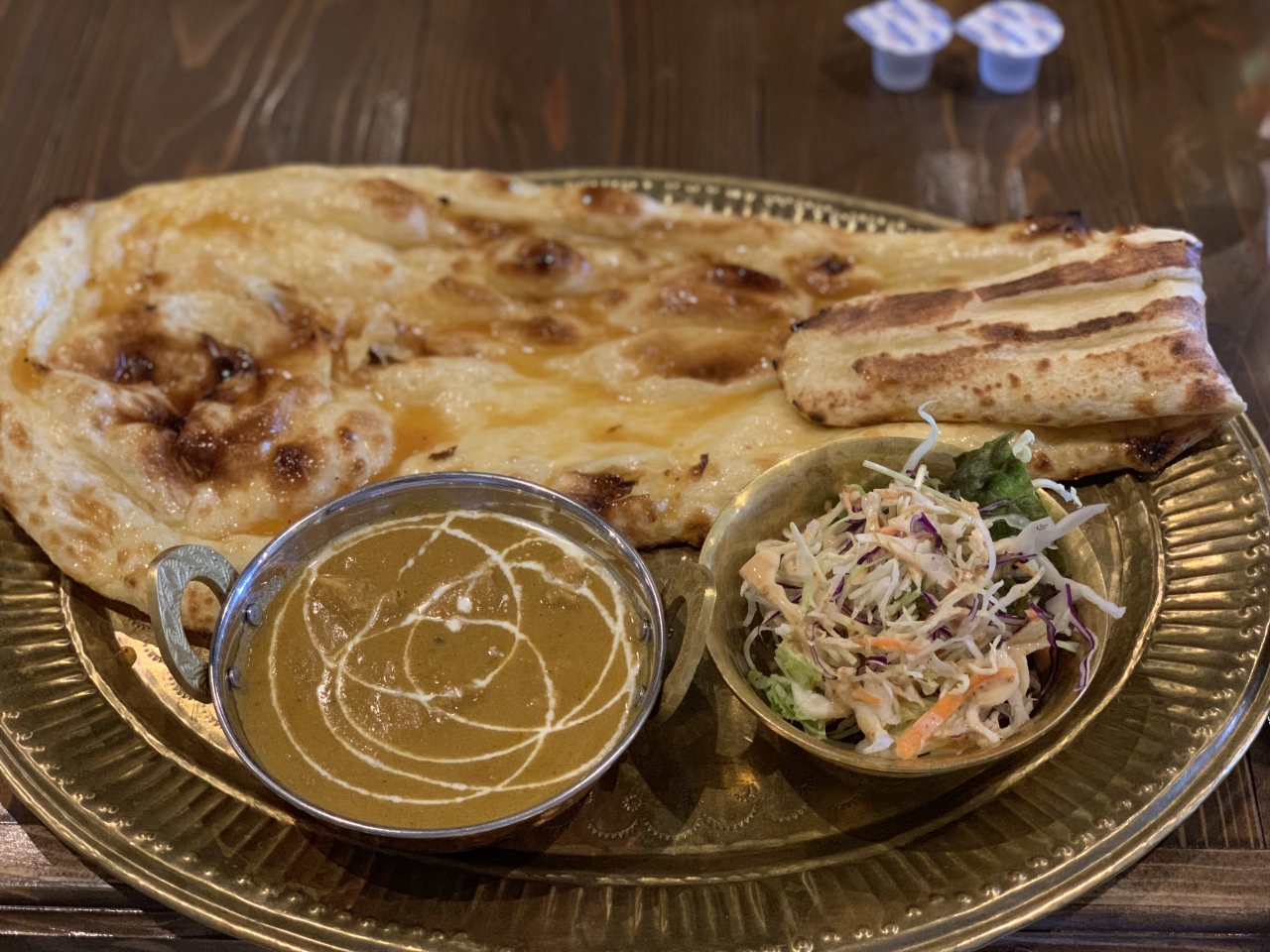 お皿からはみ出るほどのナン、ハニーなので甘いんですが、カレーと合わさるとちょうどいい。