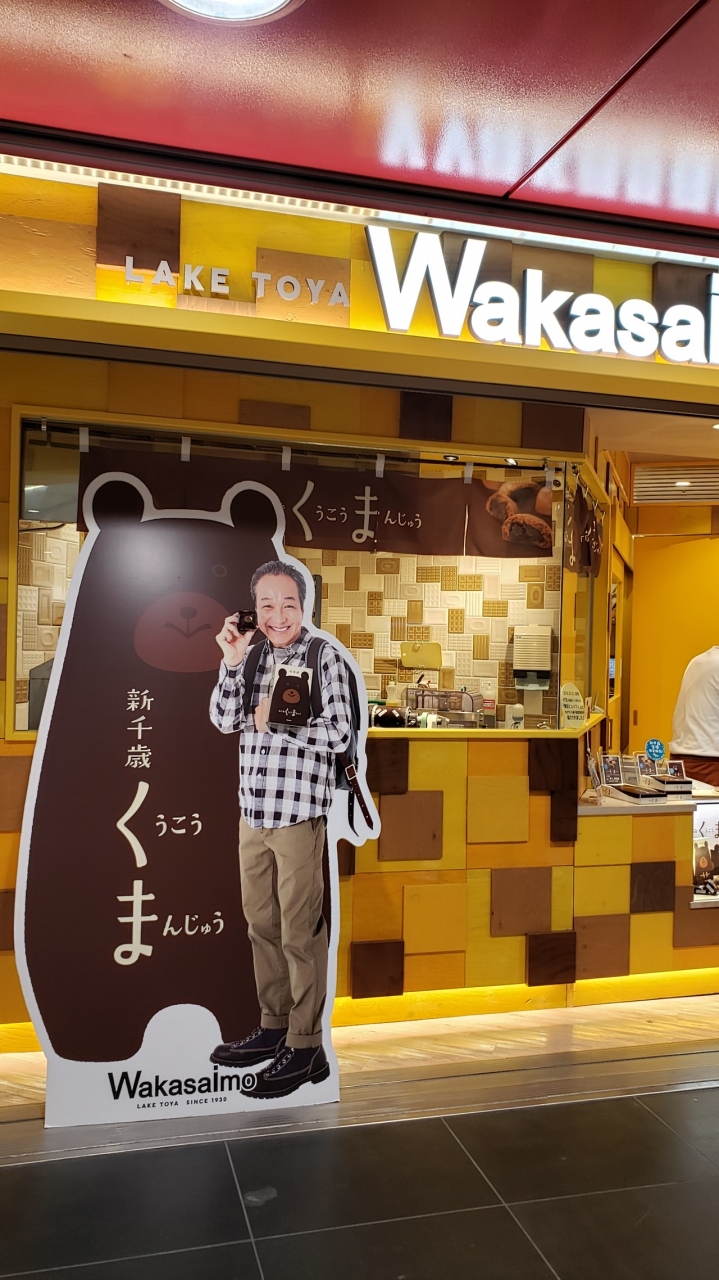 新しいお店のようで綺麗でした、遠くから見ると何のお店かわからないほど(笑)昔のわかさいも本舗と違いポップで明るい雰囲気です、また前回札幌でも見た俳優の小日向さんとこちらでは「くうこうまんじゅう」の大きなクマが並んでいるので目立ちました。
