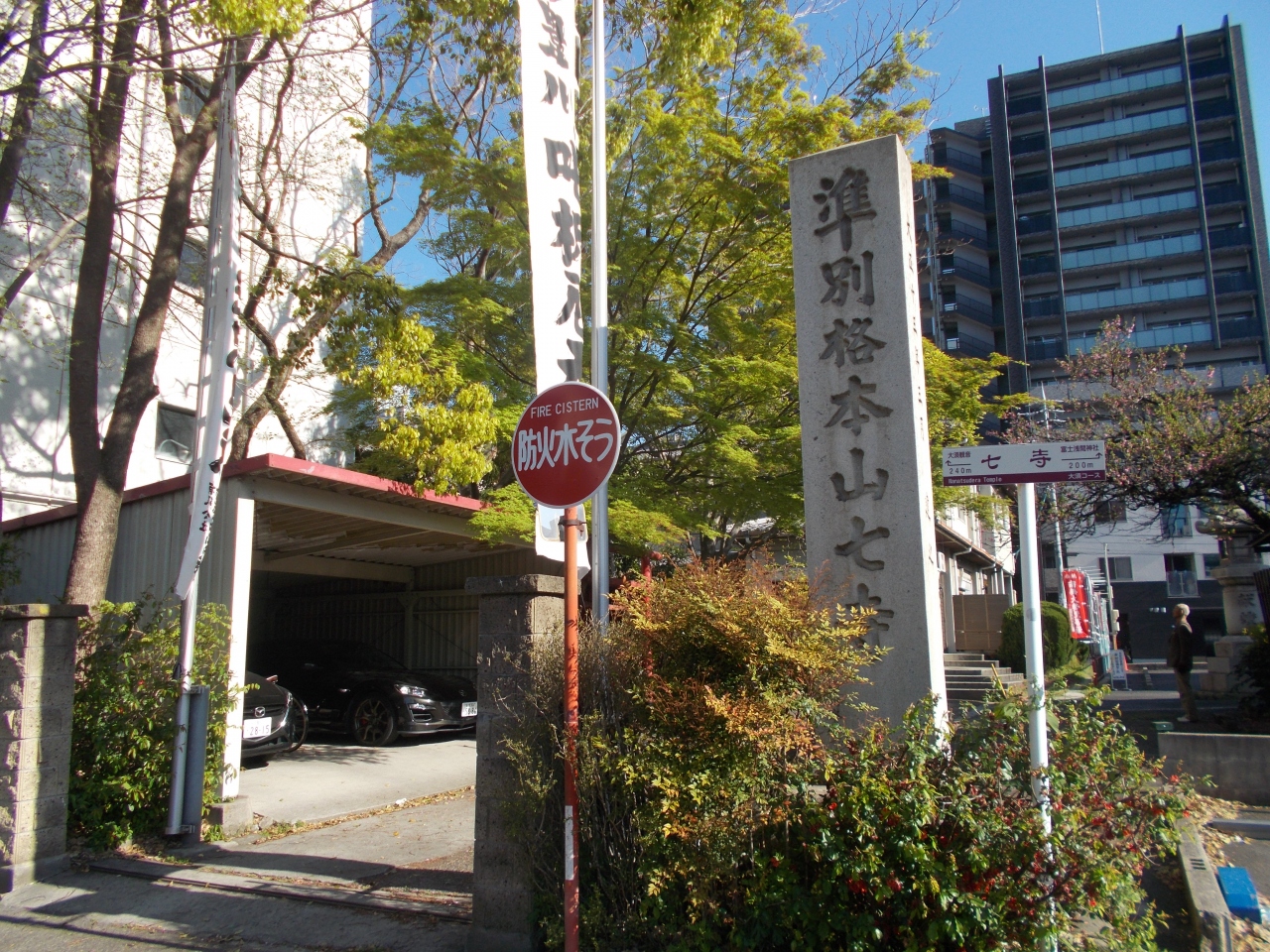 この七寺は大須界隈の中で南西の場所にあります。この七寺は長福寺という名称です。真言宗智山派の寺院です。8世紀に紀皇広が7歳で亡くなりそのために七堂伽藍を建立したので七寺と言われます。広大な寺院でした。尾張徳川家の祈願所にもなっています。七寺は昭和20年の名古屋大空襲で喪失しています。今は小さな寺の印象です。