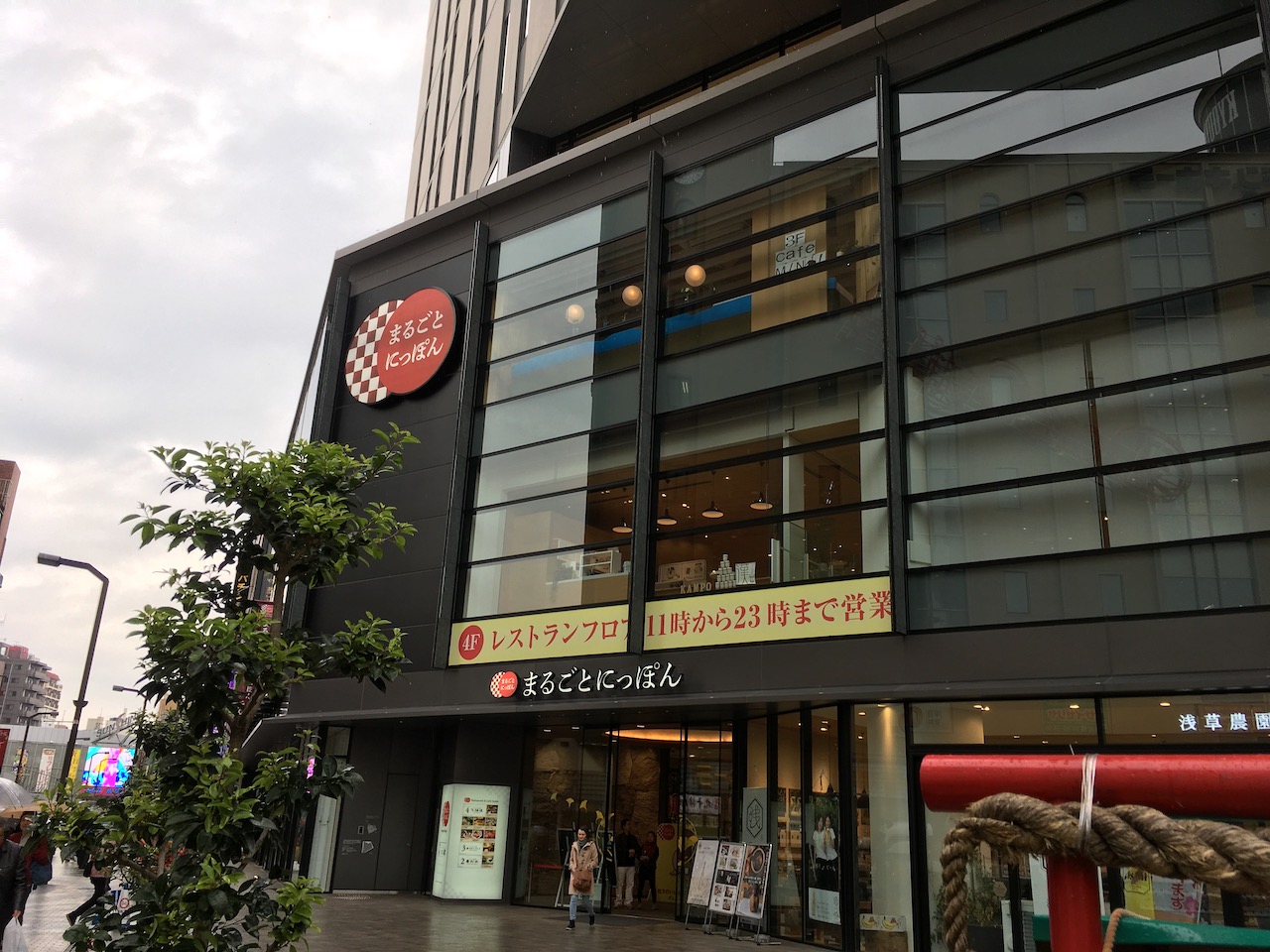 3Fのテラスに出ると、浅草寺の五重の塔の先端が見えました。