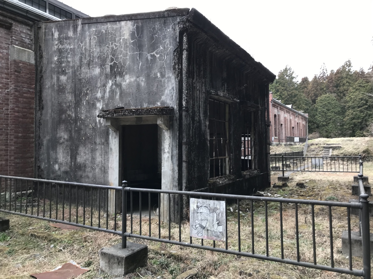 旧丸山変電所は、裏手に回れば廃墟感が満載。