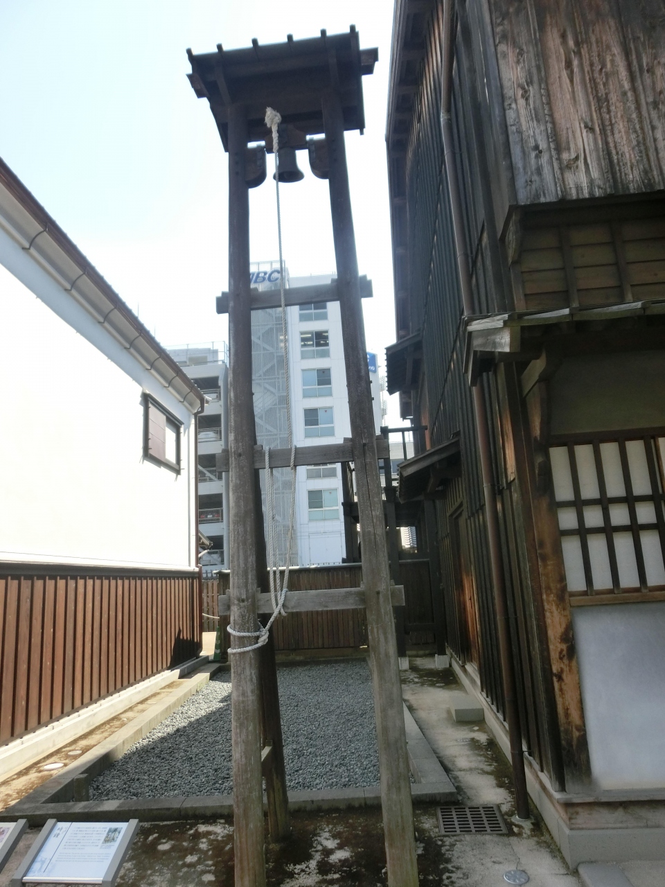 木製のシンプルな櫓に付けられている鐘は、ひもを引いて撞く西洋式で、実際に18世紀にオランダで使用されていたそうです。