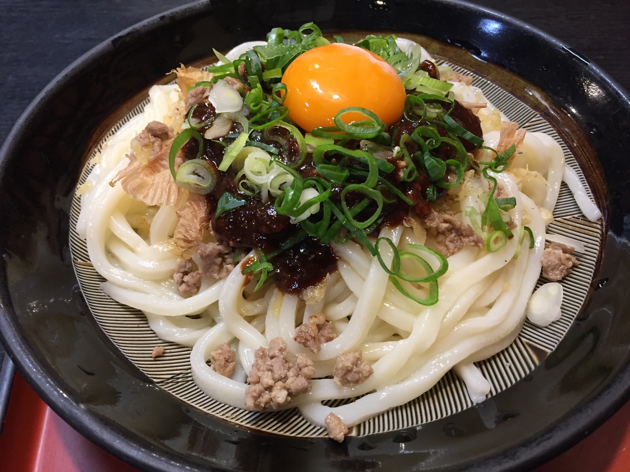 今回はおすすめメニューにあった八丁味噌となたね油使用の「岡崎まぜめん」を注文しました。麺は温と冷が選べたので、当日は暑かったので、冷たい麺にしました。そぼろ肉に味噌だれと、ねぎと卵黄がトッピングしてあり、まぜていただきました。八丁味噌の色が濃いので、味も濃いのかとおもいきや、麺と絡めると丁度良かったです。