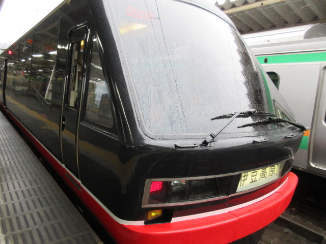 伊豆方面の旅行で利用した列車です。熱海から乗りましたが、たまたまこちらの黒船列車が到着してとてもうれしかったです。というのも、普通車の料金で豪華な列車に乗れるのですから。列車自体も黒でかっこいいですし、船内も広告などが伊豆の紹介になっていてよかったです。席も海がみられる感じで工夫されていますので、ほんとうにラッキーでした。