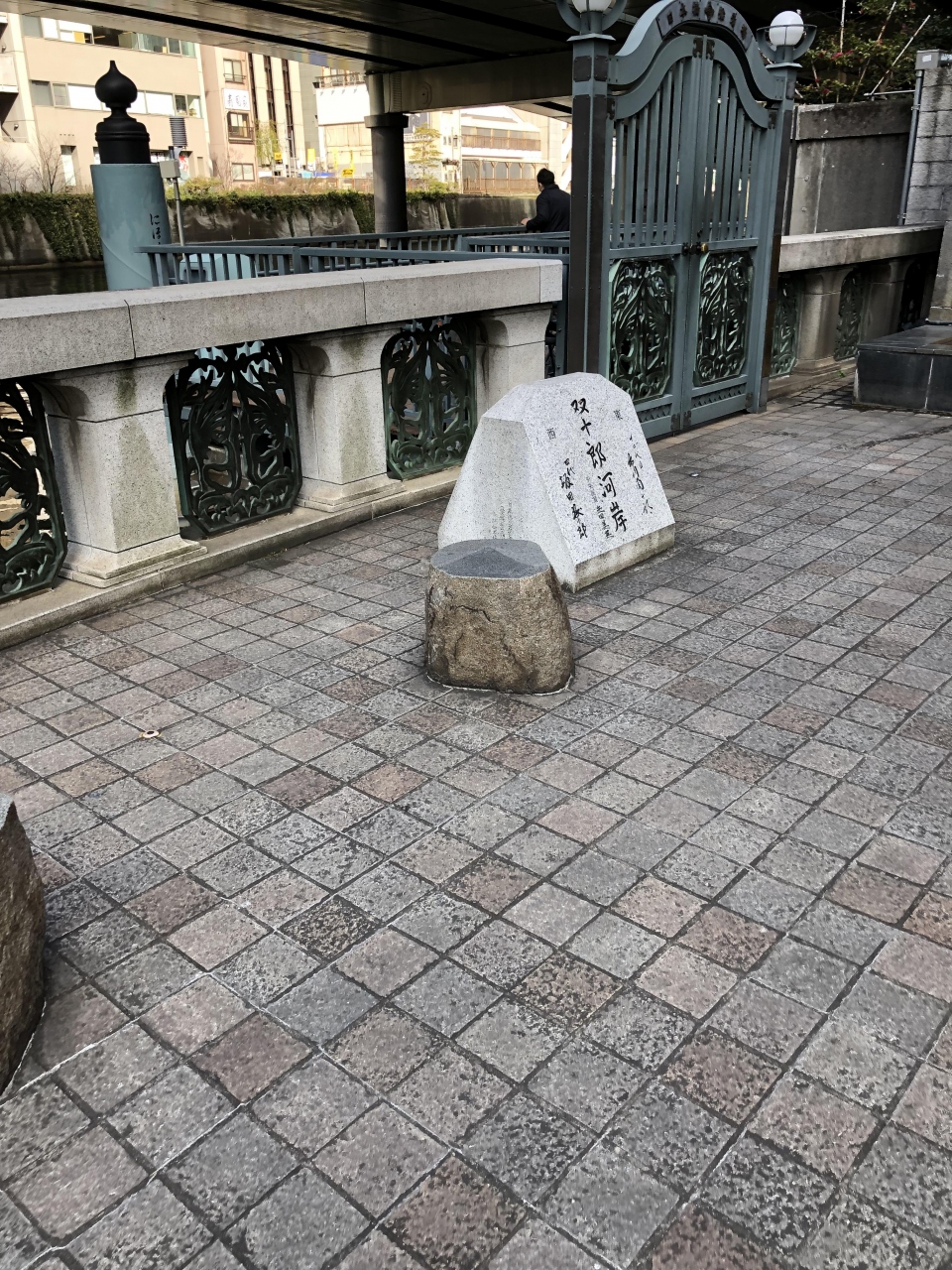 日本橋駅側の日本橋前の滝の広場にある石碑です。日本橋架橋100周年を機に造られたもので、かつて汚かった日本橋川を地元の人たちがきれいに再生させたことを記念して作られました。ここはフェリーの発着所にもなっています。