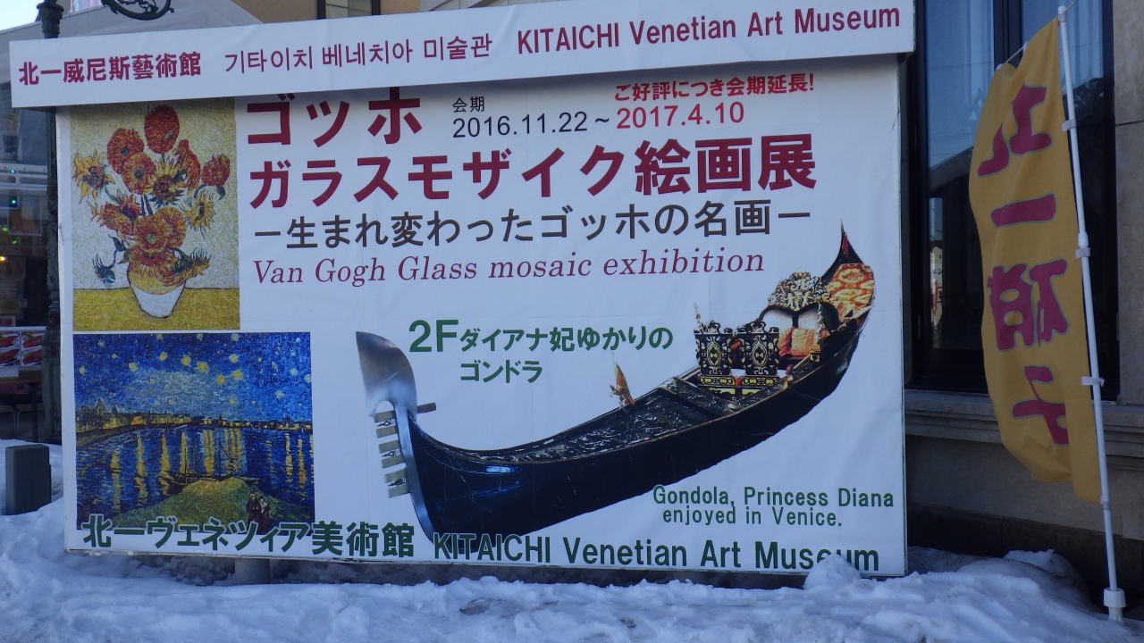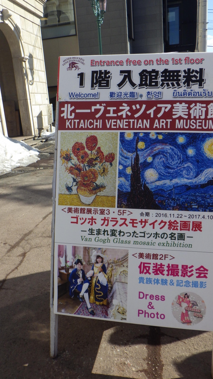 JR函館本線小樽駅から南東方面へ約1.4km、レトロ感のある街並みの堺町本通りの中央地点辺りにある北一硝子が運営する美術館です。