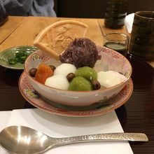 友人は抹茶のアイスが入ったパフェ、私はあんこを味わいたかったので、あんみつにしました。