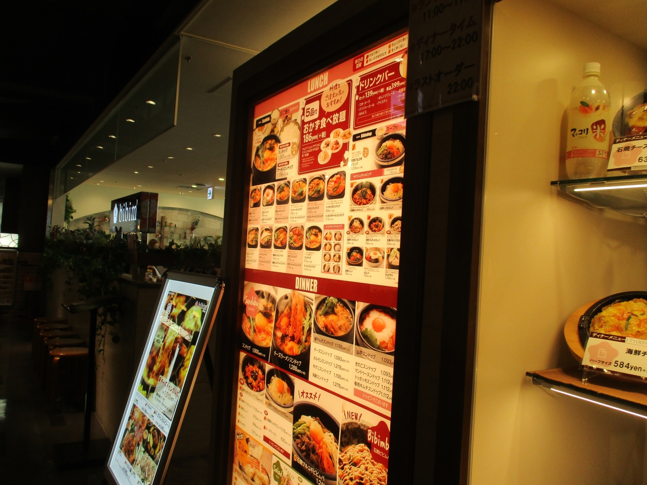こちらのビビムは、完全なオープンスペースなので、中が丸見えです。知り合いに会ったら困るときはお勧めしません。ディナータイムに、海鮮チヂミのハーフサイズがあって580円でした。このサイズでこの値段なら気軽に食べれていいですね。そんなにお腹がすいていないときにもお勧めです。
