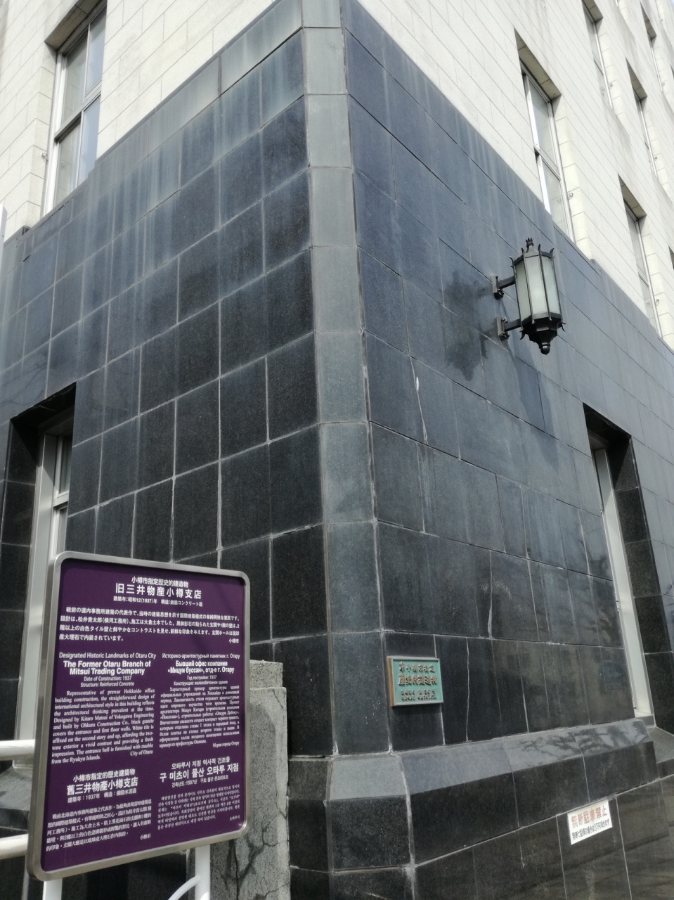 小樽の市街地にある歴史的建造物のひとつです。旧日本銀行小樽支店などが建ち並ぶ一角にある建物は、1階は、黒御影石が貼られ、2階以上は白色のタイルが貼られているので白色と黒色のコントラストが印象的な建物でした。80年以上前に建てられた建物ですが、現在も現役として使用されていることを知り驚きました。
