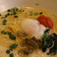 豆乳の明太子カルボナーラを食べました。カルボナーラなのにあっさりしていてスープも全部飲みたいぐらいでした。麺はかなりアルデンテで好みでした。スタッフの対応が良くなかったのが残念です。入店の際に挨拶はなく、明らかに来店したと分かっているのにこちらが声をかけるまで無視でした。美味しかっただけに残念です。