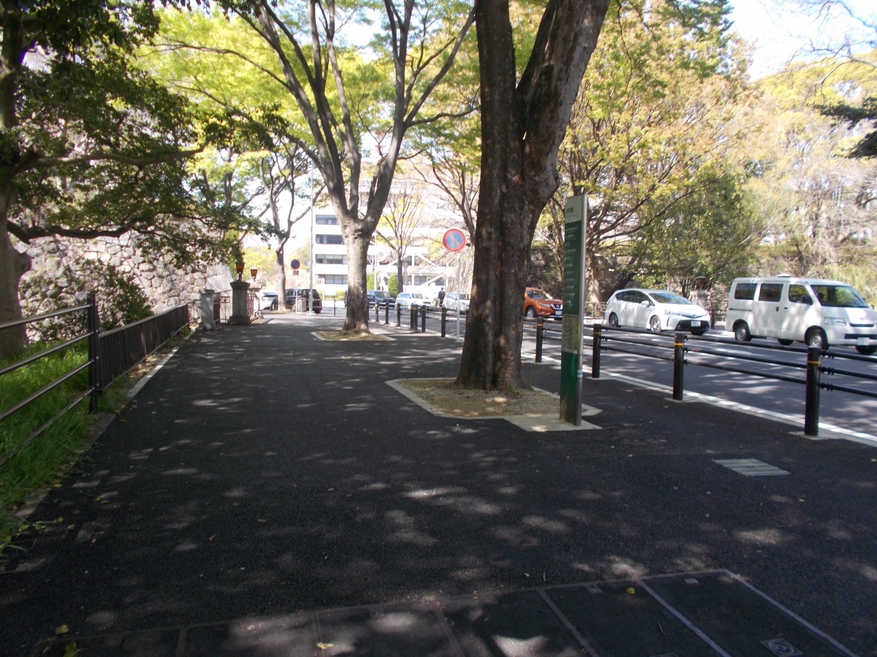 この本町橋は名古屋城の三の丸から城下に至る通りにかけられた橋です。外堀にかかる橋です。この橋を名古屋城に向かうと二の丸を経て本丸にいたります。またこの橋を南に行くと本町通りで大須にいたります。今はコンクリート造りになっています。橋の幅が広いです。
