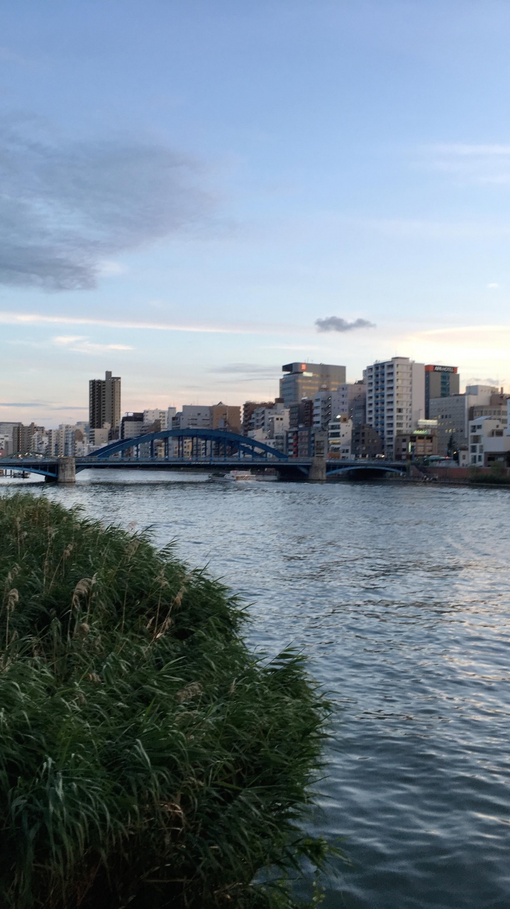 東京の下町をゆったり流れる隅田川。この川の流域のほとんどの地域が市街地なので、バス停や駅なども川沿いにもたくさんありますし、護岸工事をしたあとに都市公園として整備されているので、歩道も整備してありますから散歩にも適しています。