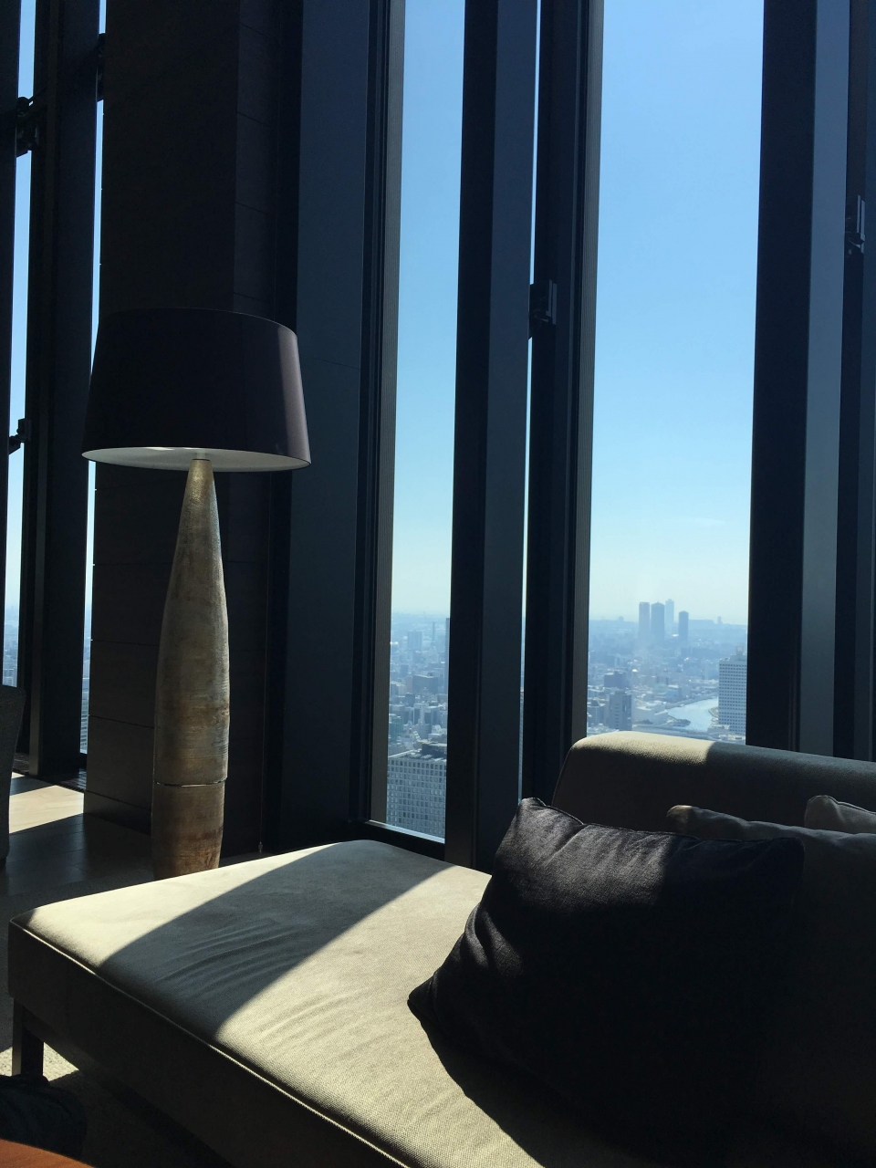 コンラッドホテルのダイニングです。スマートカジュアルの服装規定ですが、男性はジャケットはせめて着ていった方がいいでしょう。かなり値段はしますが、高層階ならではの景色はもちろんのことですが、インテリアもいいので、それなりにゆっくりできます。