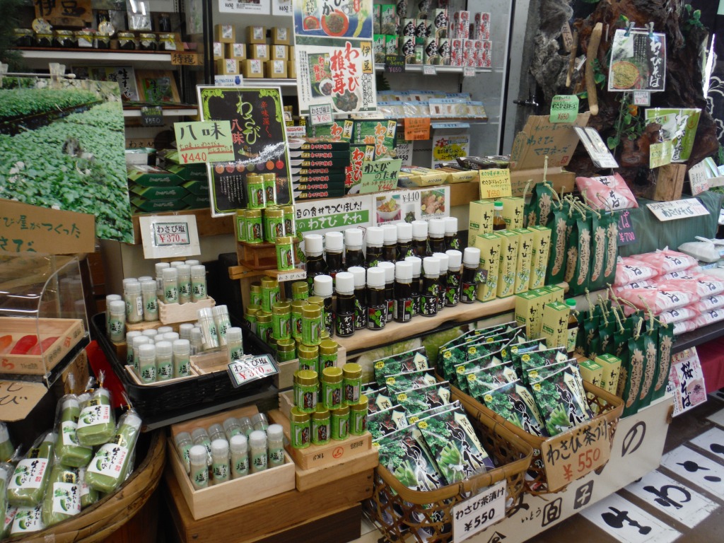 河津七滝ループ橋を上った後、国道414号線を北上したところにあった道の駅(旅の駅)で、トイレ休憩で寄りました。広い駐車場があり、わさび関係のいろいろなお土産が売られていました。軽食コーナーもあり、うどんやそば、定食やわさびソフトやさくらソフトなどもありました。