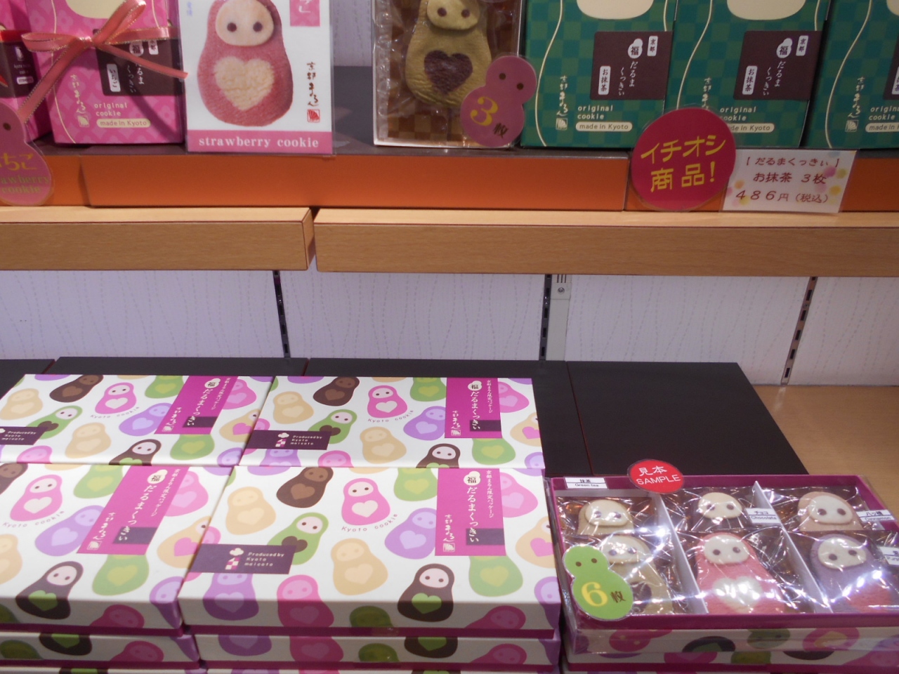 「祇園まるん」は四条通の北側のお店が立ち並ぶ中にあります。金平糖やあめ、マシュマロ、クッキーなどお菓子が主な商品です。世界最小サイズの金平糖の瓶詰、かっぱや動物模様のマシュマロ、クッキーも動物モチーフなど、どれもかわいいです。お値段は高めに感じましたが。おみやげにも喜ばれそうです。